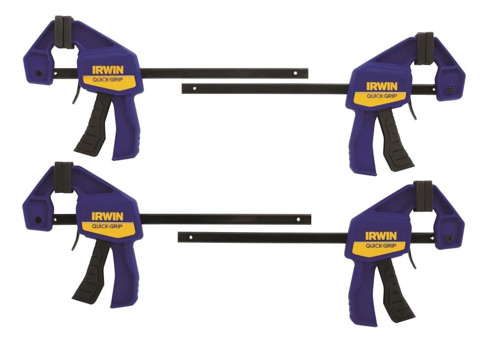 - Irwin Quick-Grip 4-pack of 6-in clamps is ideal for securing materials for sawing, drilling and positioning work for fastening