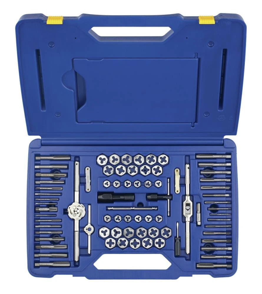 - High-carbon steel taps and dies provide durability