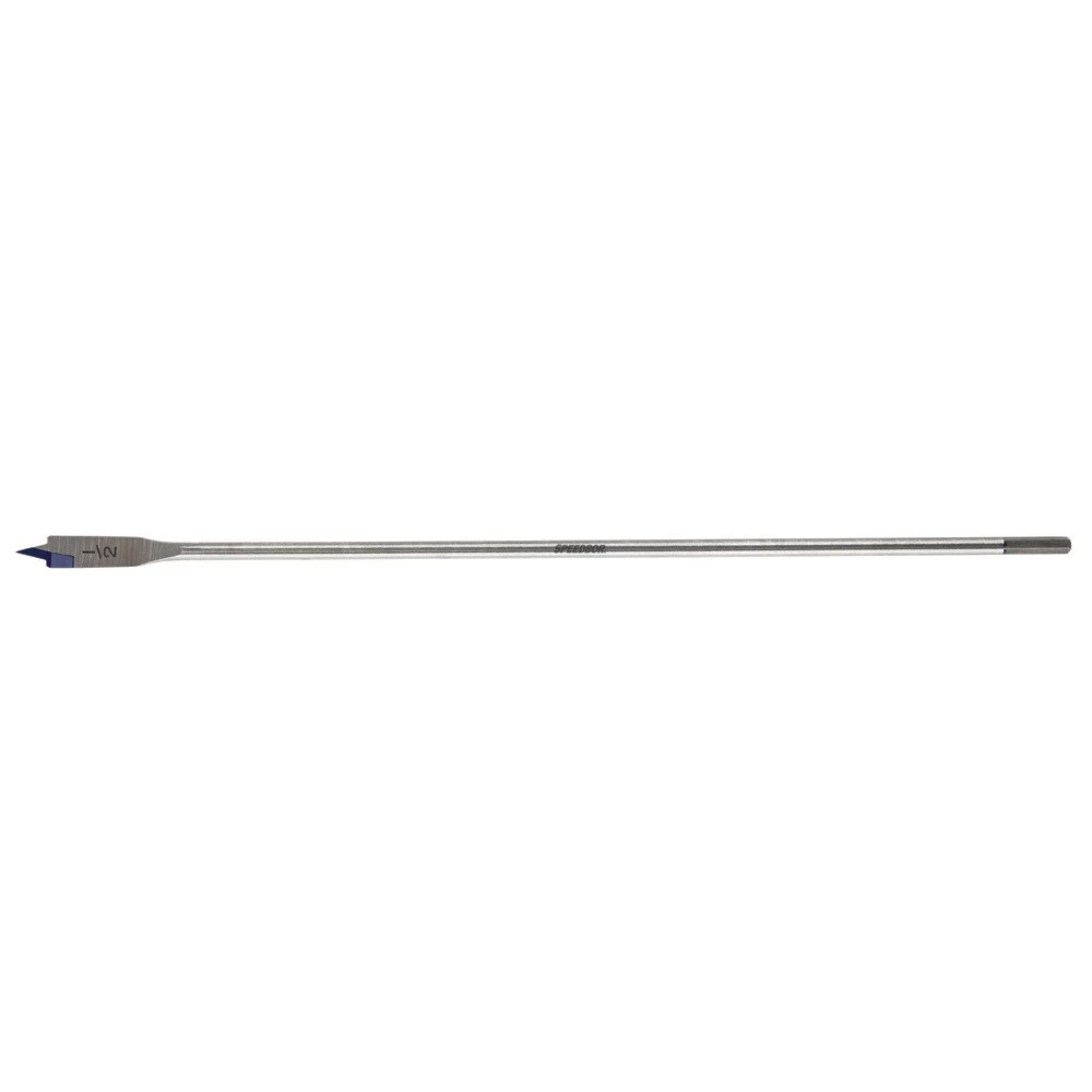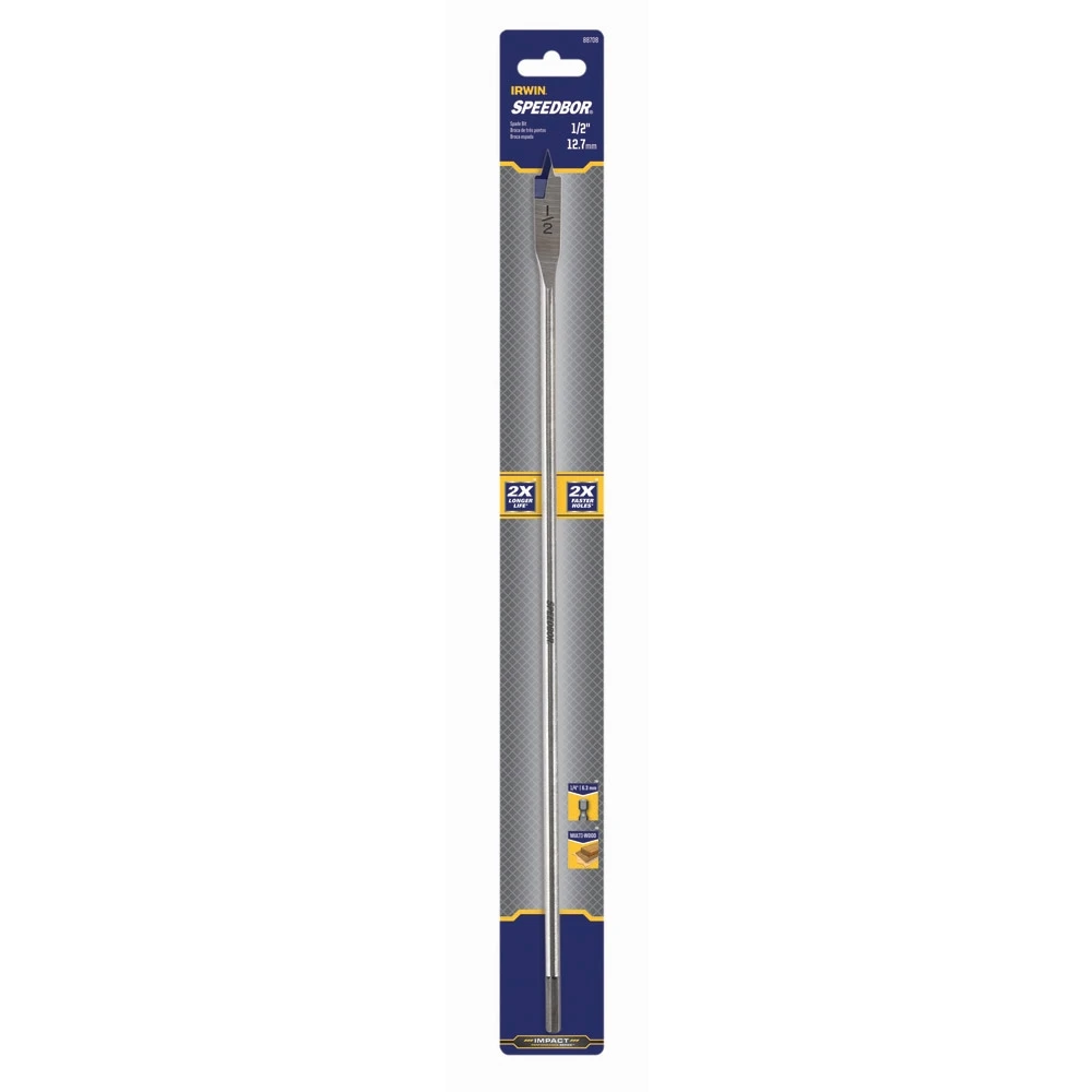 The improved SPEEDBOR Spade Bits now last 2X Longer and cut 2X Faster. Next-generation SPEEDBOR® Spade Bits feature a chamfered cutting edge for durability in cutting wood and optimized point tip that is wider and longer than previous IRWIN spade bits to minimize splintering and control speed. Patented Blue-Groove cutting edge allows for a large cutting area for aggressive removal of wood chips and fast drilling.